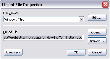 | 4. | In the Linked File Properties box under File Viewers, click on the file viewer needed for opening the source file. |