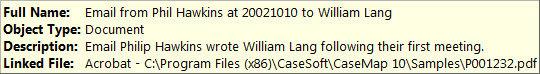 The file is now linked to the question record by its short name. Point to the short name link to view the file information, including the file's full name, object type, description and file path.