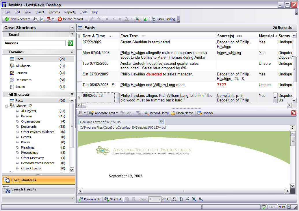 You can also click the Tools menu, and then click Open Native. This option only works when DocManager is not docked as a pane in CaseMap. The source file now displays in its native application. |