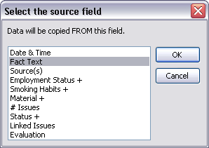 | 6. | In the Select the source field dialog box, select the field that data will be copied from, then click OK. |