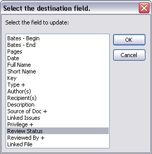 | 6. | In the Select the destination field dialog box, select the field you want to update, then click OK. |