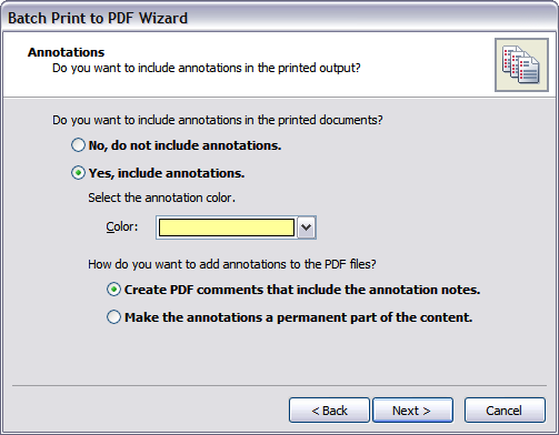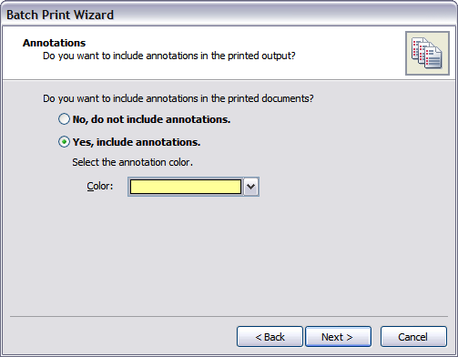 If Yes, click on the color for which you want annotations to print in the Color list.