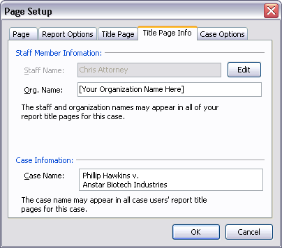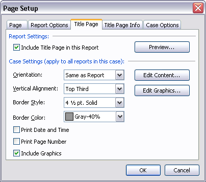 | 10. | In the Case Name field, verify the case name or type in the name you want to print on title pages. |