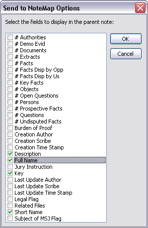 | 5. | In the next dialog box, select the check box for each field you want to include as a child note in the NoteMap outline, then click OK. |