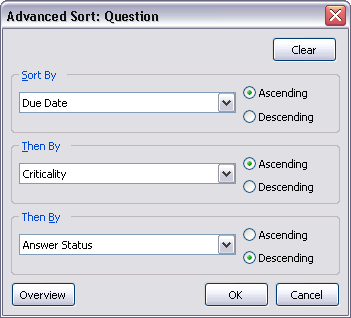 | 5. | In the Then By drop-down listing, click Criticality for the secondary sort option and then select Ascending to ensure the most crucial questions sort to the top of the list. |