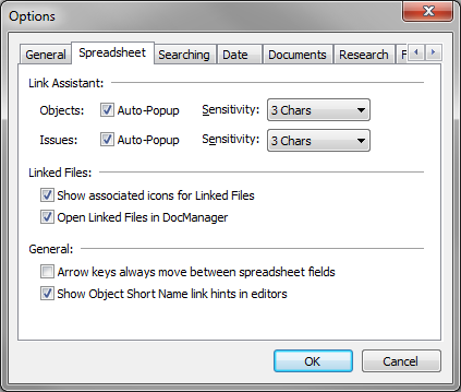 | • | On the Spreadsheet tab, clear the Open Linked Files in DocManager check box to view documents/images in their native application (i.e., Adobe Acrobat). |