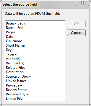 | 6. | In the Select the source field dialog box, select the field that data will be copied from, then click OK. |