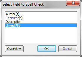 | 4. | In the Select Field to Spell Check dialog box, select the field you want to spell check, then click OK. |