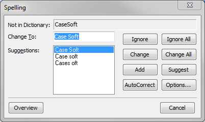 | • | Click the appropriate button to the right to ignore, change, add, autocorrect, etc., the word. |