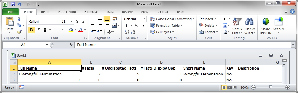 CaseMap spreadsheet data exports cleanly into a Microsoft® Excel spreadsheet, where fields and columns, and cells and fields, automatically synchronize between the two applications.