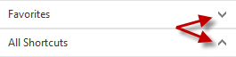 To show/hide task panes or the Navigation pane, click the Expand/Collapse buttons. For example, if you prefer navigating your spreadsheets from the All Shortcuts task pane, you may want to hide the Favorites pane from view so you can see the full listing of individual object spreadsheets.
