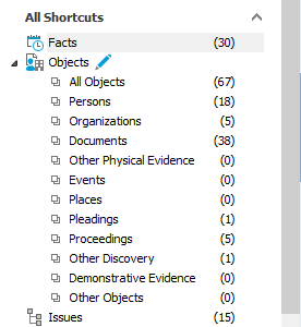 To maximize a spreadsheet's view on-screen, click on the Collapse button to pin the Navigation pane to the left side of CaseMap. The Navigation pane can easily be expanded and locked on-screen when you need to use it more frequently.