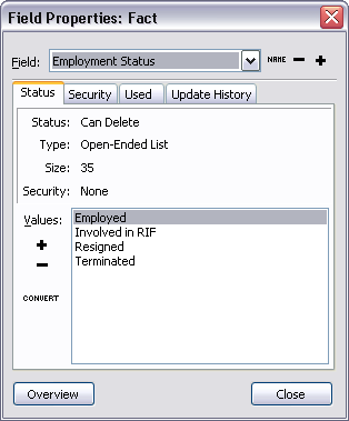 Open-ended list fields display a plus sign + in the field header. Fixed lists do not display a plus sign in the field header, but still allow users to select or add field values in drop-down lists. If you created an open-ended list and now want the field values to be fixed selections, you can convert it to a fixed list field. Doing so will keep field selections succinct and case users from creating too many values.