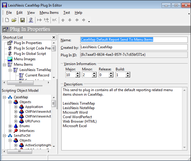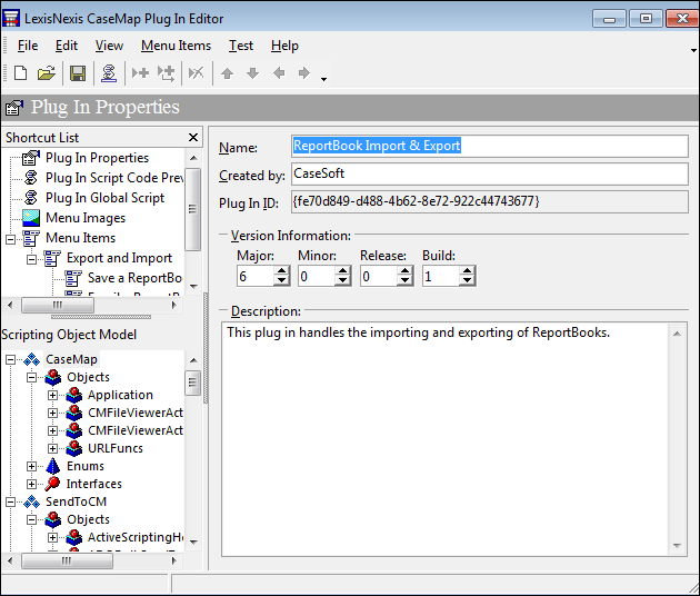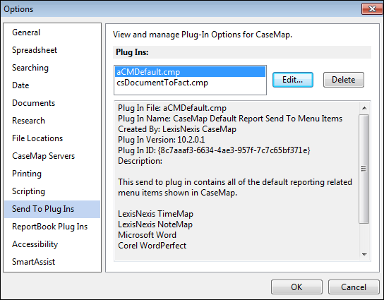 CaseMap has two different tabs where you can edit or delete plug-in programs for ReportBooks and the Send To CaseMap functionality.