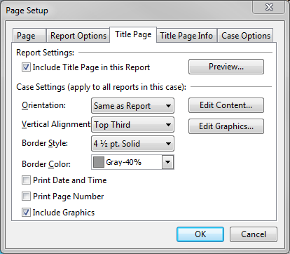 | 10. | In the Case Name field, verify the case name or type in the name you want to print on title pages. |