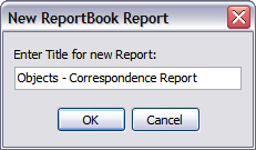 | 5. | In the New ReportBook Report dialog box, type in a name for the new report, then click OK. |