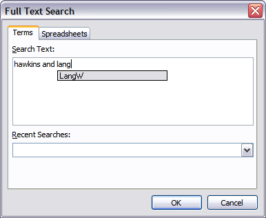 If the Search field is empty and you click the Full Text Search button, the Full Text Search dialog box will open.