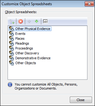 | 2. | In the Customize Object Spreadsheets dialog box, select the spreadsheet you want to move. |