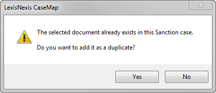 | • | Click Yes to continue and duplicate the document in Sanction. |