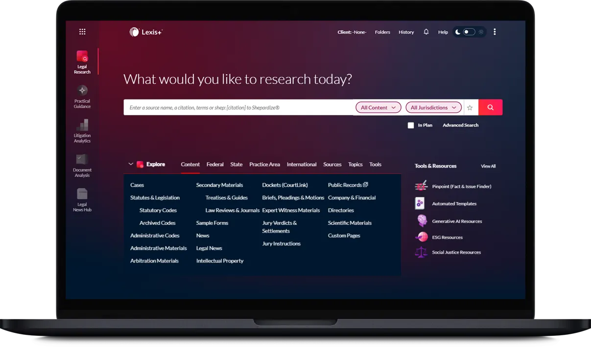 Lexis+® is an advanced legal research platform that seamlessly combines comprehensive legal content with innovative technology to empower legal professionals.