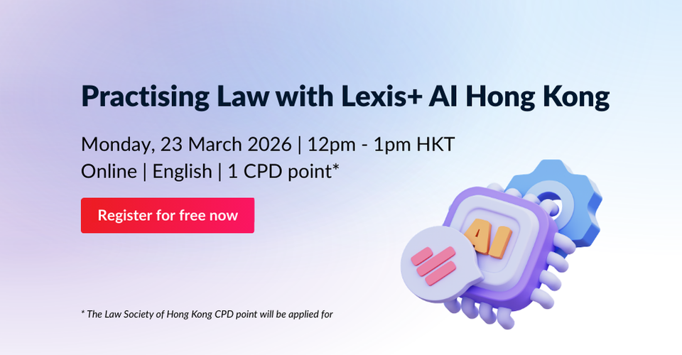 [Upcoming CPD session: 23 March 2026, 12:00pm - 1:00pm HKT | Online] Webinar description The legal landscape in Hong Kong is shifting fast — and the professionals who thrive are the ones who level up now. Join Practising Law with Lexis+ AI Hong Kong on 23 March 2026, 12pm – 1pm HKT for a practical, easy-to-apply introduction to how legal AI tools can transform your workflow with greater speed, accuracy, and confidence...