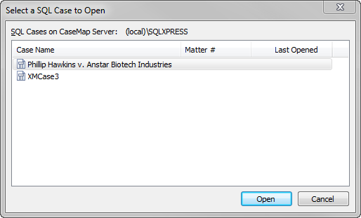 | • | Opening a SQL case in the CaseMap or TextMap client |