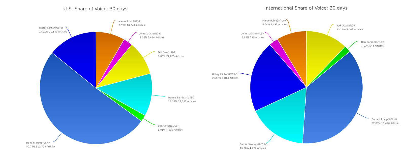 The biggest surprise in LexisNexis’s current analysis is how dramatically different share of voice, or percentage of coverage, is between U.S. and international media. Consider these facts: