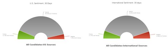 When it comes to positive, negative and neutral media coverage, U.S. media skews more neutral and positive than international media: