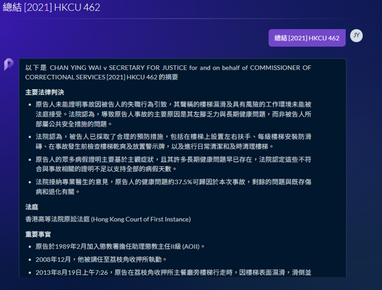 High-Accuracy Case Summarisation: Generate concise summaries of voluminous cases directly in Traditional Chinese.