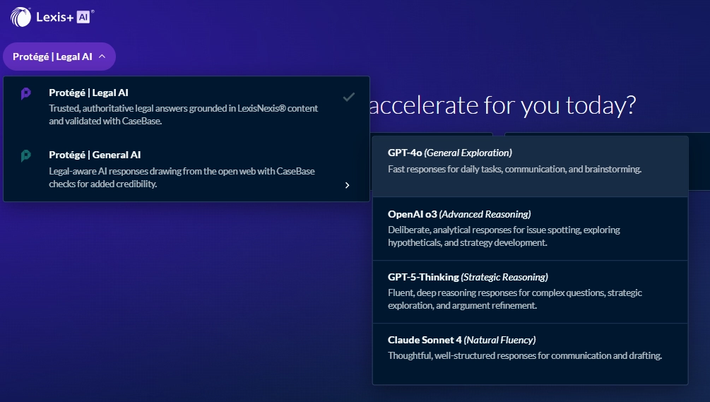 Each AI model serves distinct purposes, and LexisNexis has built a simple dropdown menu that lets lawyers select the right tool for each task. GPT-5 excels at strategic reasoning and connecting disparate facts, while also providing real-time web search results. OpenAI o3 offers deep research capabilities for breaking down complex legal arguments or analysing intricate fact patterns. Claude Sonnet 4 is adept at writing for marketing communications or social media releases.