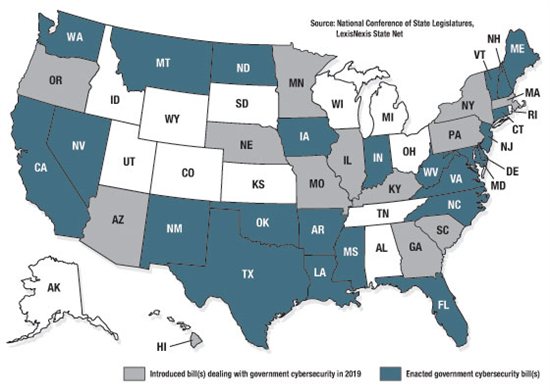 At least 37 states have introduced legislation this year dealing with the cybersecurity of government agencies, 24 of which have enacted such measures, according to information from the National Conference of State Legislatures and LexisNexis State Net. The measures deal with a range of issues, including election cybersecurity, the exemption of government cybersecurity information from public records laws and studies on the use of distributed ledger technologies by government agencies.