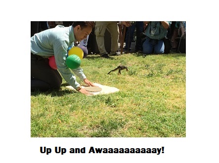 Spring and summer are rarely dull around the California Capitol and this year is no different. But things were hopping for real last month when lawmakers, staffers and others gathered on the East Lawn for the 41st Annual Capitol Frog Jump Contest. An homage to the classic Mark Twain story “The Celebrated Jumping Frog of Calaveras County,” the contest is sponsored by Sen. Tom Berryhill, who represents Calaveras, as a way to counter the high stress atmosphere of the Capitol as lawmakers near the governor’s May budget revision. Or, as Berryhill put it, “Really, how seriously can you take yourself when you’re on the ground whispering to a frog?” For the record, the winner for longest jump this year was a croaker named R2Green2, who was prodded along by his human, Capitol staffer Doria Wallentine. The emerald bullfrog totaled an impressive 10 feet, 9 inches, or more than seven feet longer than the shortest jumper.