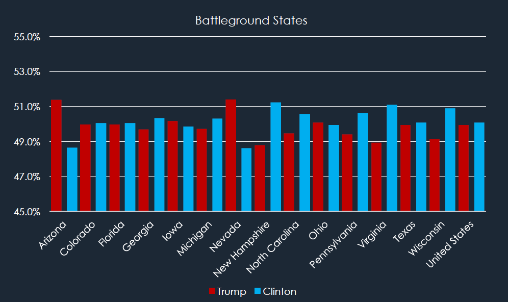 This could be especially important because, if the race is tightening as indicated by this data from Cognovi and from polls and modeling like that of Nate Silver's FiveThirtyEight, then the battleground states are that much more critical.
