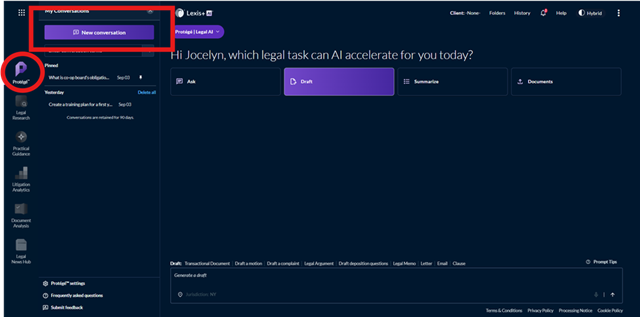 Select Protégé in the Experience Dock and begin a New Conversation. Make sure the DRAFT task is highlighted: