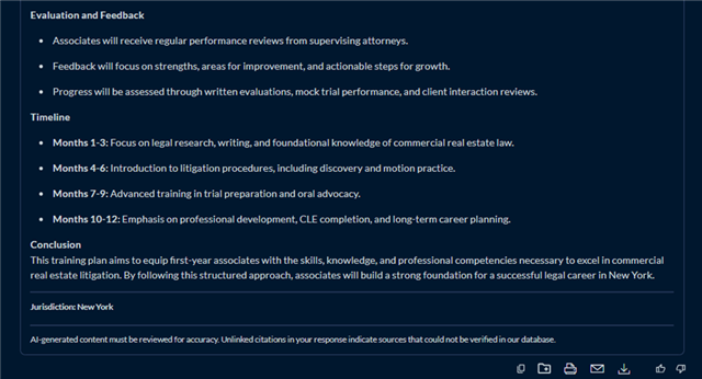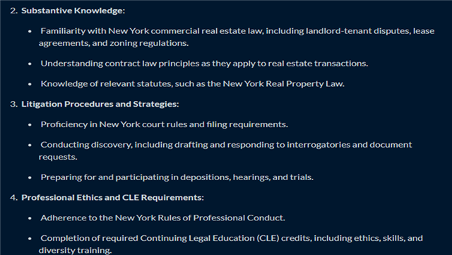 Create a training plan for a first-year associate practicing commercial real estate litigation in New York.