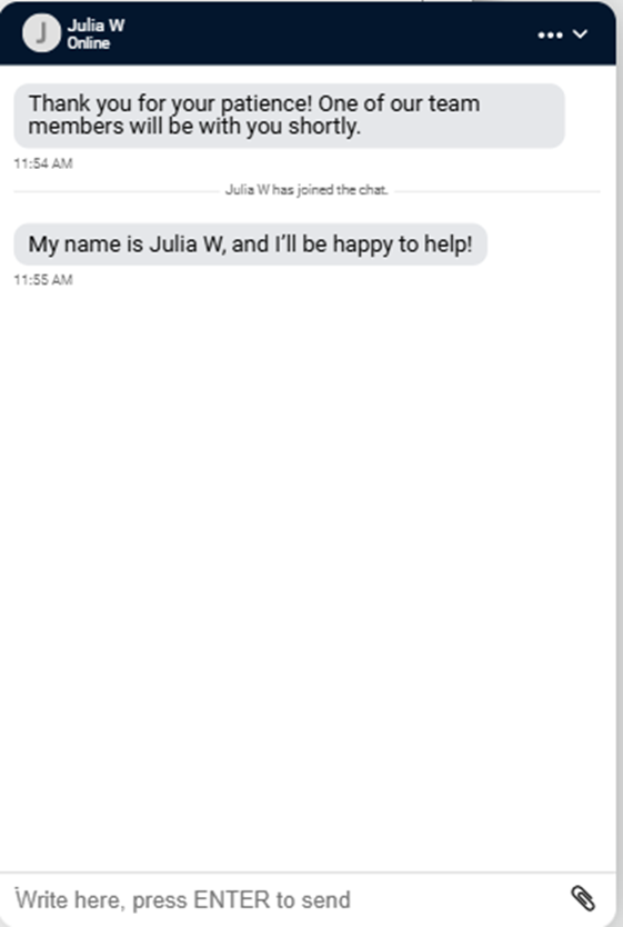 - Your chat begins in a pop-up window, allowing you to converse back-and-forth with a search or tech expert.