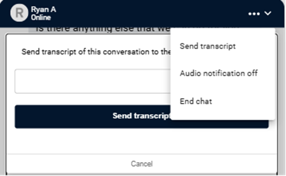 - One the key features of Live Chat Support is the ability to easily capture the conversation for future reference. When you end your chat session, simply click on the ellipsis and select the option to send the transcript to yourself. This feature creates a detailed, step-by-step record of your interaction, which is helpful for recreating searches or reviewing troubleshooting steps later on.