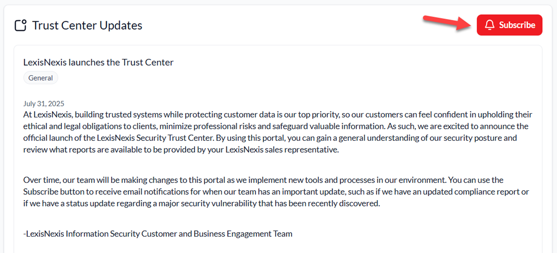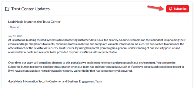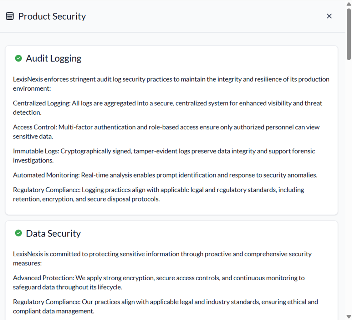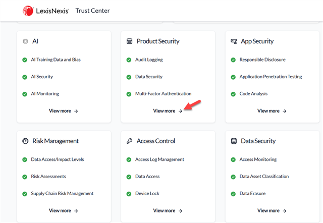 LexisNexis recently launched the LexisNexis Trust Center, a public website that is your direct line to verified, up-to-date information about our security, privacy, and Responsible AI practices. This allows you to find information when the thought strikes, for example, as you are evaluating a tool or comparing offers. This information is readily available; you no longer need to request it and wait for a reply.