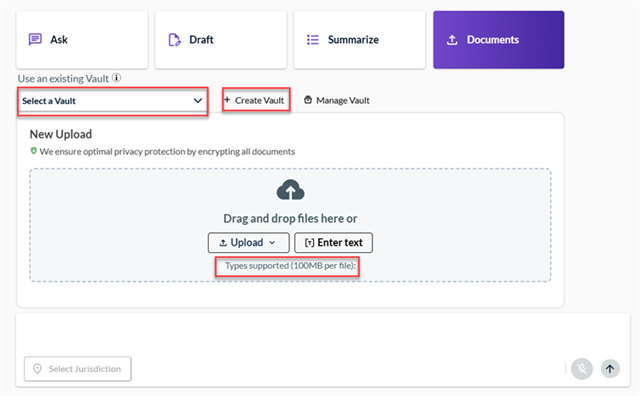 Recently, the file size for document uploads has increased to 100MB per file. This means that lengthy litigation records, transcripts, or large exhibits are now easier to add and then search or summarize.