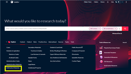 To access Labor & Employment Visuals on Lexis+, click on Arbitration Materials from the Content section of Explore, or select Labor & Employment in the Practice Area section.