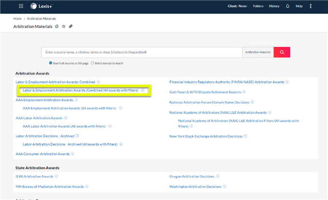 To see all filtered Labor & Employment arbitration awards, click Labor & Employment Arbitration Awards, Combined (All awards with filters).