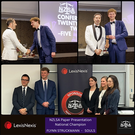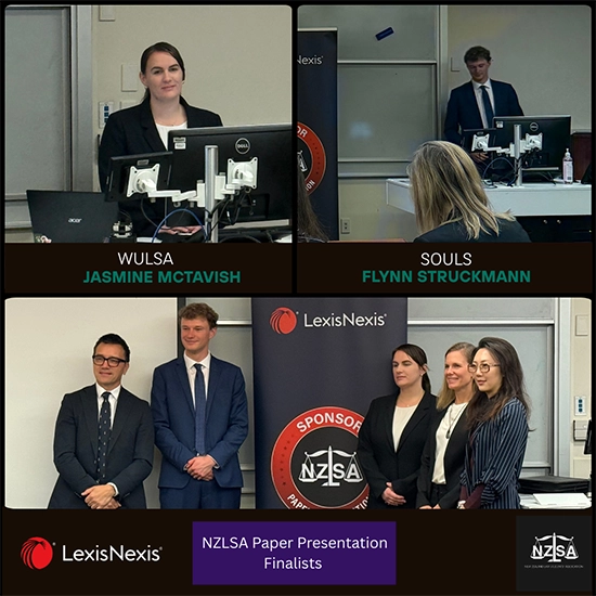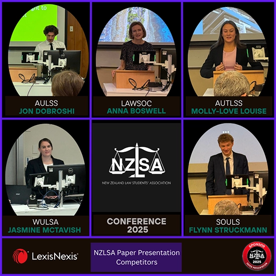 The final round was a tight contest between Flynn and Jasmine McTavish (WULSA, University of Waikato) with her paper “Bridging the Gaps: Mental Health, Deportation, and Legislative Efficacy.”
