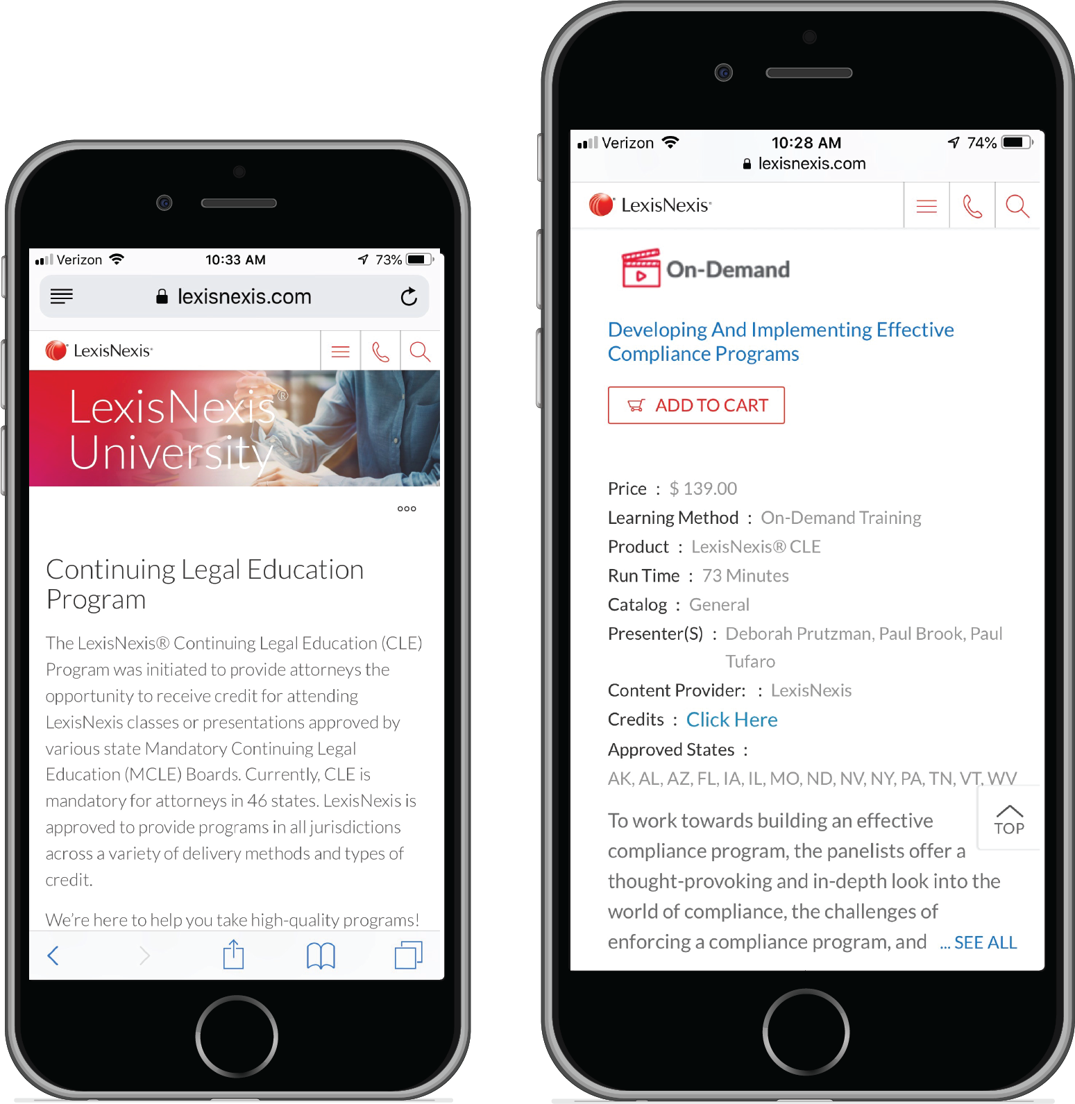 LexisNexis® CLE On-Demand programs are available 24-hours a day, 7-days a week, 365-days a year in convenient online formats that fit your schedule. Click here to search our catalog of available CLE courses now. If you are looking for even more scheduling convenience, contact us today at 800.227.9597 x1252111.