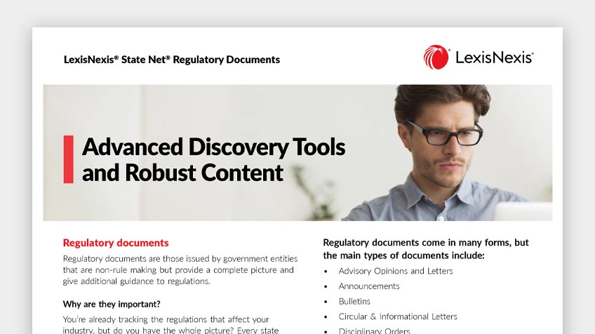 In regulated industries, rules and laws are forever being modified, and the smallest changes can throw a client’s business out of compliance. How to stay on top of multiple, ever-changing regulatory updates? The State Net service turns raw, scattered data into knowledge you can use.
