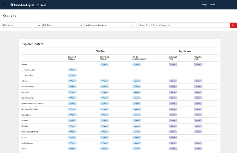 Outil complet de suivi législatif offrant des mises à jour et des alertes en temps réel sur les lois fédérales, provinciales et territoriales à travers le Canada.