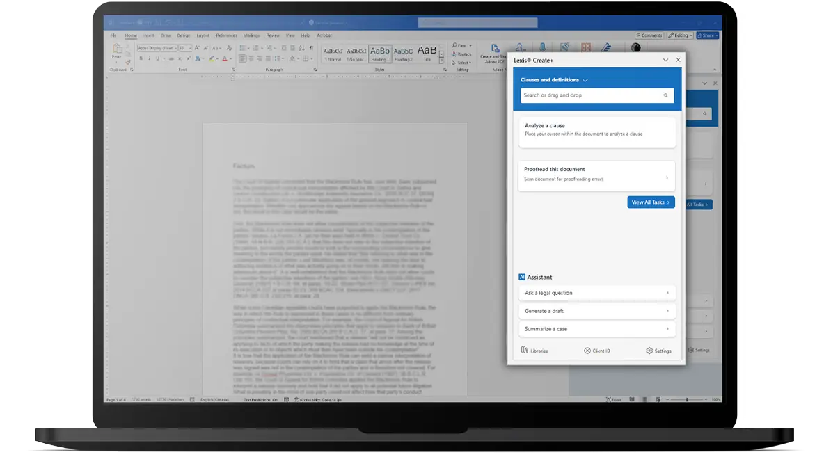 Lexis Create+ rassemble tout le contenu juridique, les outils de relecture et de rédaction nécessaires pour créer des documents juridiques remarquables, rapidement et en toute sécurité.