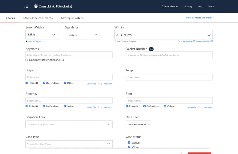 CourtLink®は、裁判所の公判をオンラインで検索できるほか、豊富な文書データベースと高度な検索・アラート機能を備えています。