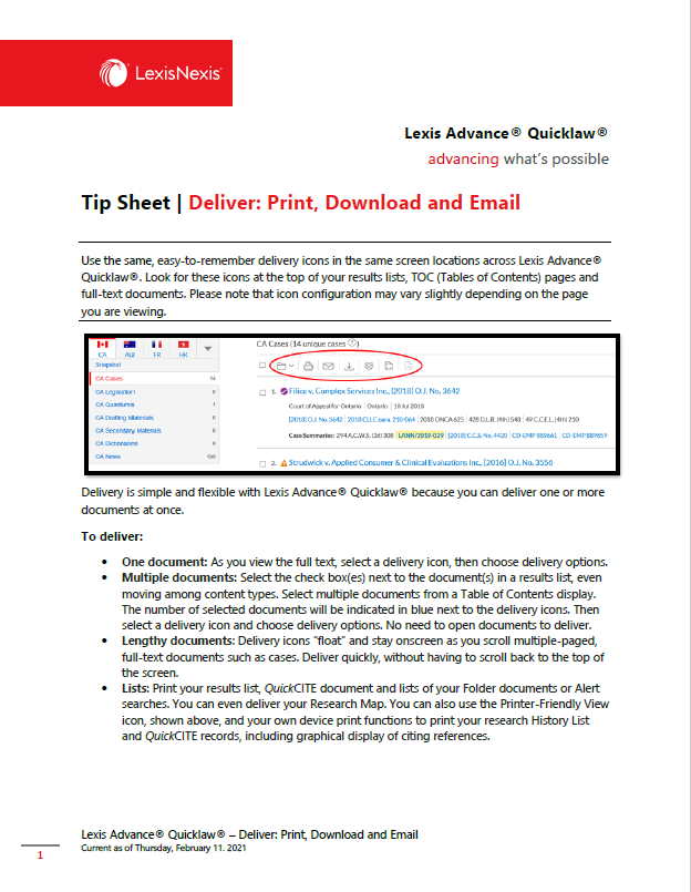 How to print, save, email, and send your documents to Dropbox on Lexis Advance Quicklaw. [1:42]