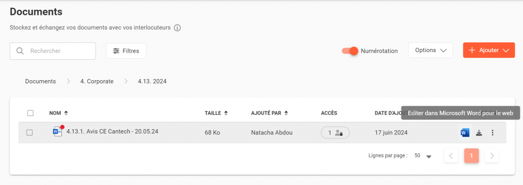 Mode modification : une fois les modifications effectuées, le document est alors instantanément mis à jour sur Closd (dans un délai de 30 secondes), il vient écraser l’ancienne version.