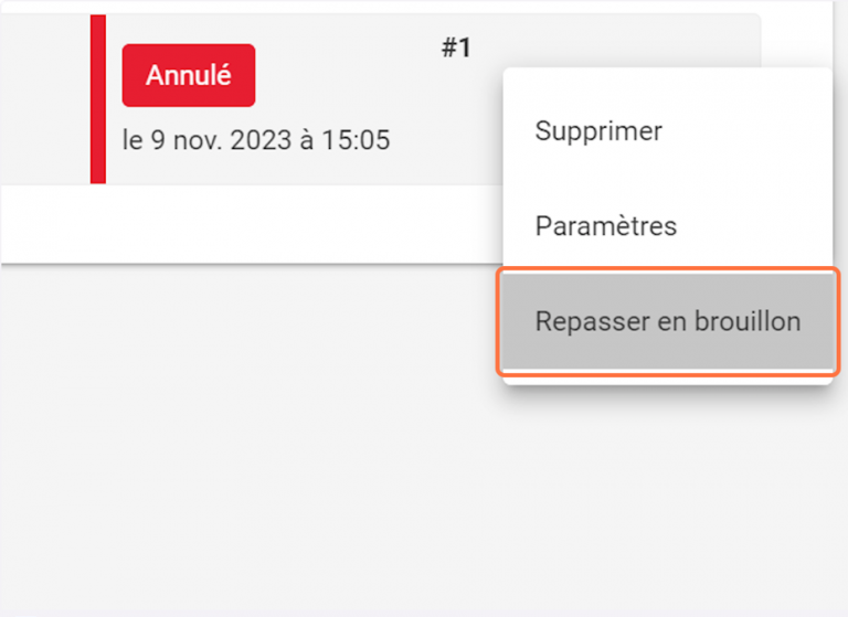 Vous avez fait une erreur sur un document et souhaitez la corriger ? Si votre document est en statut « envoyé » vous devez d’abord l’annuler puis le remettre en brouillon afin d’effectuer vos modifications.
